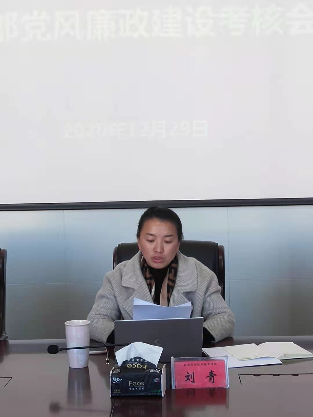 12月29日,根据控股公司党委《关于开展2020年度党风廉政建设责任制检查考核工作方案的通知 》精神,学院党委在教学楼中会议室开展了2020年度党风廉政建设责任制检查考核工作。学院党委副书记、工会主席、纪委书记刘青主持会议。