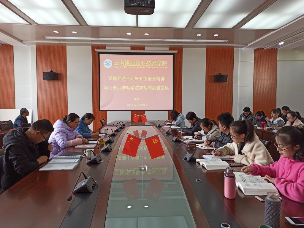 12月4日,学院党委宣讲团成员、党委副书记、院长李蕾到教学第一党支部宣讲党的十九届五中全会精神,勉励支部党员牢记习近平总书记的教诲,贯彻新理念,融入新发展,奋力推动学院实现高质量发展。