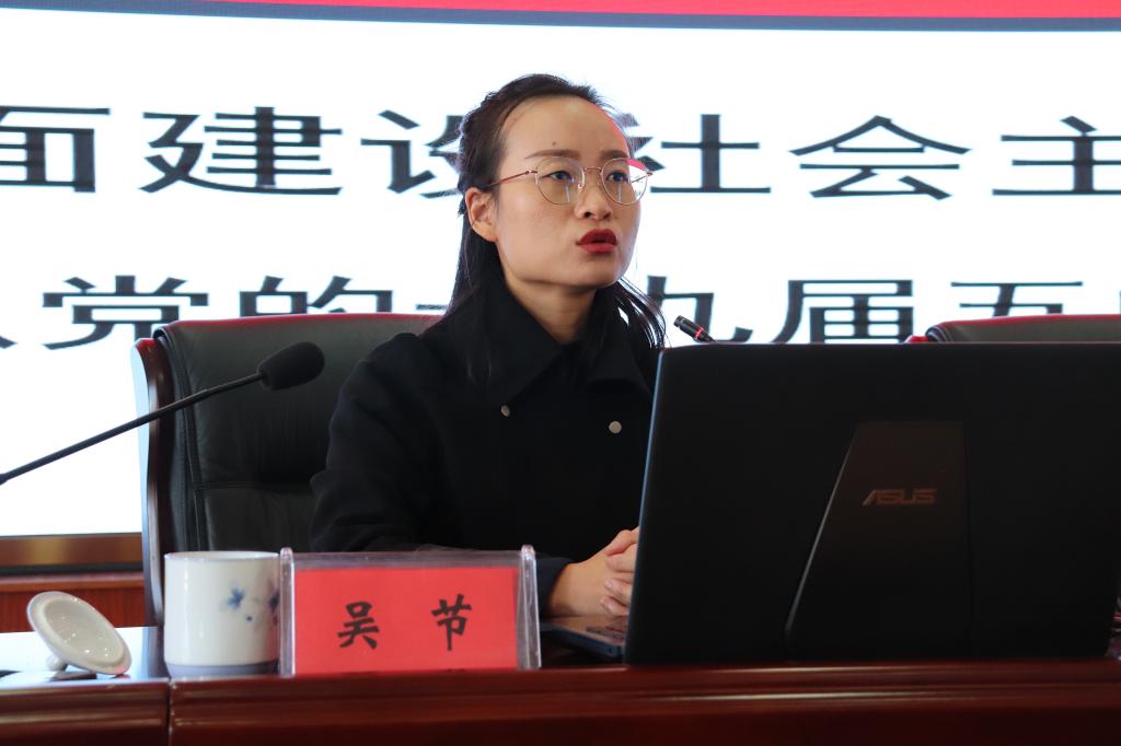 宣讲会上,吴节紧扣宣讲主题,从充分认识决胜全面建成小康社会取得的决定性成就,牢牢把握《建议》的核心要义,深刻认识、准确把握二〇三五年远景目标和“十四五”时期我国经济社会发展的指导方针、主要目标、重点任务,胸怀两个大局,全面贯彻落实党的十九届五中全会精神等方面,对党的十九届五中全会精神进行了深入浅出地讲解。整个宣讲报告会主题鲜明、内容丰富,既有深刻的理论高度,又紧密联系实际,对全面理解和准确把握十九届五中全会精神,具有很强的指导作用。