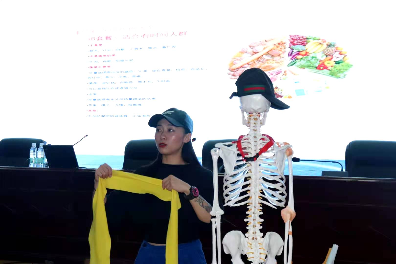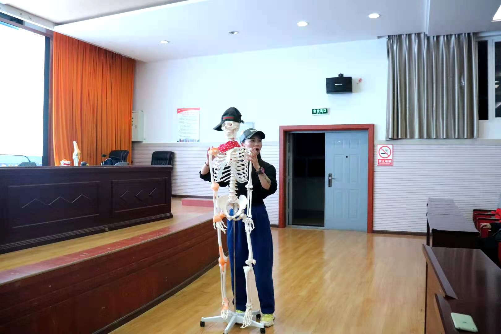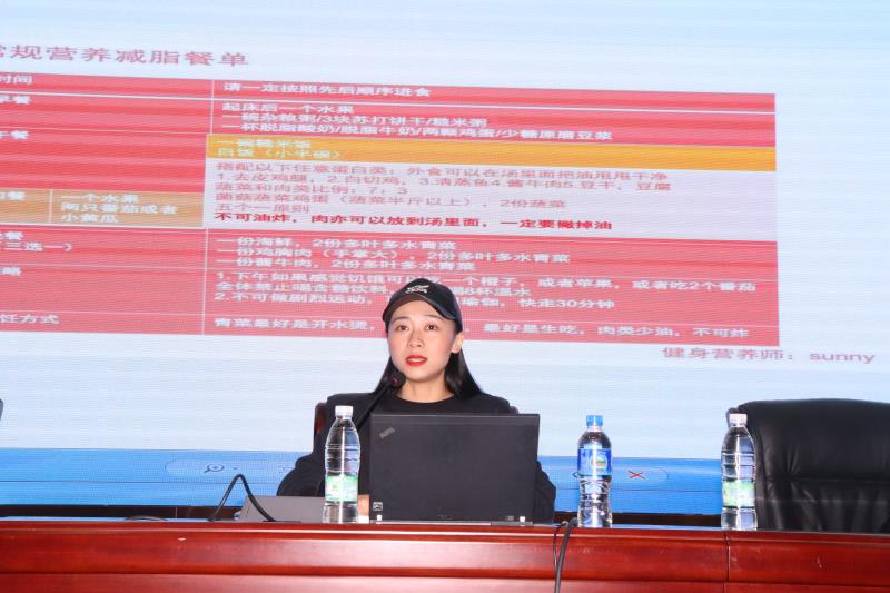 朱文静教练结合自身多年积累的理论知识和丰富的实践经验,为到场师生传授健康运动技巧。朱文静教练从科学运动的概念及重要性、运动前的准备活动、运动过程中的技巧、日常加强自我管理四个方面阐述了科学运动的内涵。她提出“运动处方”的概念:运动要选择合适的方式、强度、时间和频率,运动前的热身、过程中的补水、运动后的牵拉放松都非常重要。讲座最后,朱文静教练与到场师生热烈互动,为师生示范动作要领,提出科学运动建议,赢得到场师生阵阵掌声。