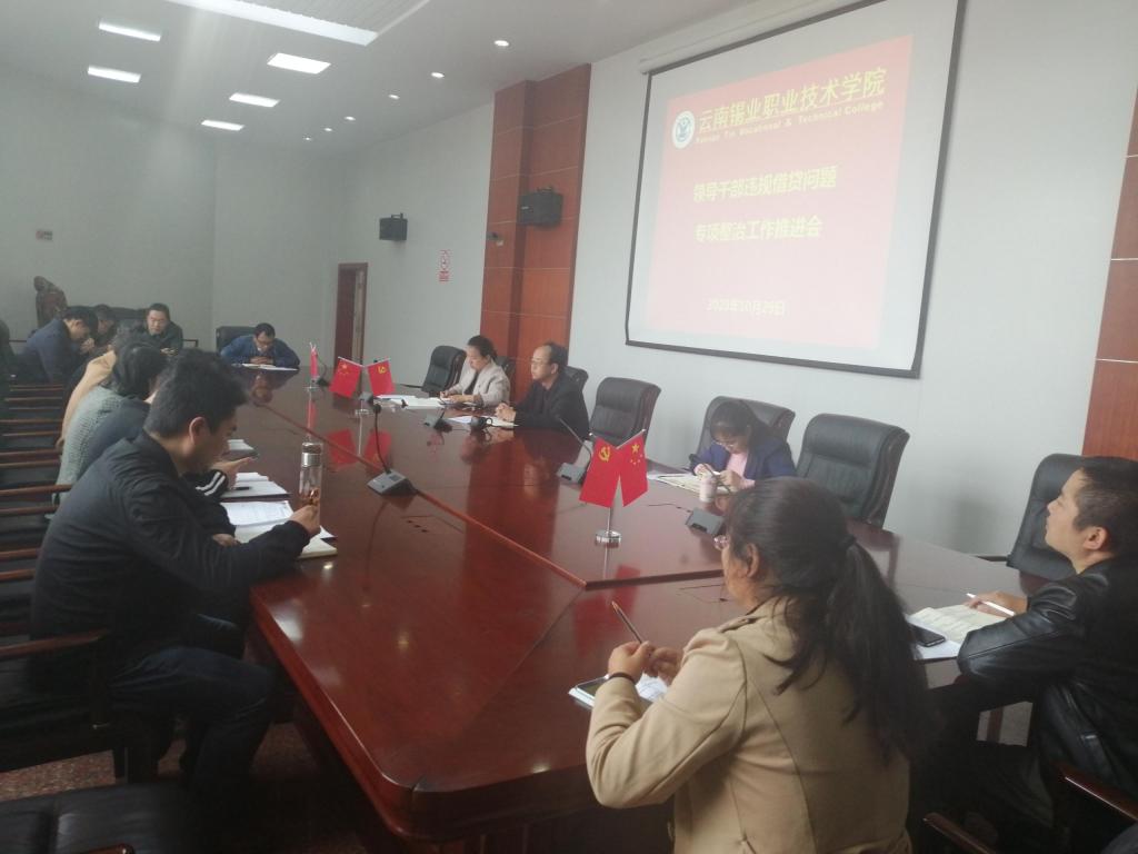10月29日下午,云锡职院在3号教学楼中会议室召开领导干部违规借贷问题专项整治工作推进会,深入贯彻落实省国资委、控股公司专项整治工作部署。