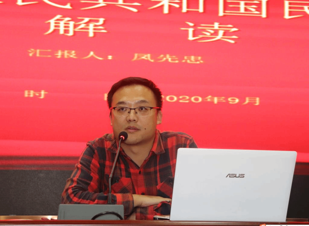 为深入学习贯彻习近平总书记在中央政治局第二十次集体学习会上重要讲话精神,充分认识颁布实施民法典的重大意义,更好地推动民法典实施。9月26日下午19:00,学院在3号教学楼508报告厅开设了主题为“解读《中华人民共和国民法典》”的专题讲座。讲座由云锡控股公司审计法务部法律事务部经理、云锡职业技术学院法律顾问凤先忠主讲,学院党委副书记、工会主席刘青主持。