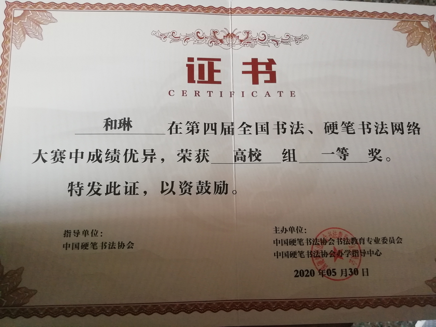 为了丰富学生艺术文化生活,激发学生练字兴趣,进一步普及规范汉字的书写,培养学生良好的书写习惯,培养学生创造美欣赏美的视角,云锡职院于2019年11月11日参加了全国硬笔书法大赛,参赛学生共计62名,奖项设有一等奖,二等奖,三等奖,优秀奖.学院共有34名同学获奖,两名优秀指导老师,以及一个优秀组织奖。通过这次全国硬笔书法比赛活动,既丰富了学生的文化生活,培养了学生的书法兴趣和爱好,同时也提高了大家的审美意识。对于发现和培养有特长的学生,并指导其更好地发挥特长起到了一定的积极作用。