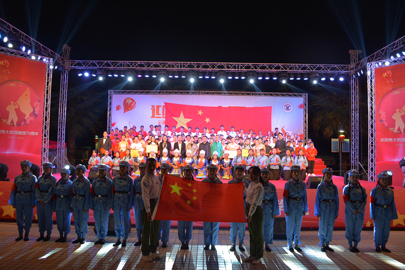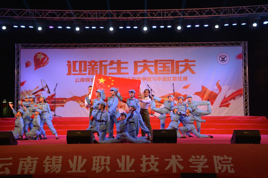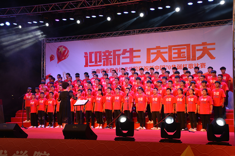 台上歌声嘹亮,台下掌声雷动。一首首铿锵有力、脍炙人口的经典红歌在校园中不断回响。晚会在蕴含青春旋律、激情岁月的舞蹈《感到幸福你就拍拍手》中拉开序幕。《我和我的祖国》《爱我中华》《我们走在大路上》《歌唱祖国》《走向复兴》《太阳最红 毛主席最亲》《光荣与梦想》《团结就是力量》《四渡赤水出奇兵》《不忘初心》《祖国颂》等一首首振奋人心的红歌带领现场观众回顾了那段激情燃烧的岁月,歌颂了中华民族自强不息的伟大精神,唱出了华夏儿女的自豪与骄傲,唱出了各民族儿女与祖国血浓于水的拳拳亲情,深切表达了云锡人对祖国的无限热爱和对新中国成立70周年的衷心祝福,展现出了云锡人对党忠诚、热爱祖国、重视民族团结、建设和谐美丽校园的良好精神面貌。诗歌朗诵《来吧朋友》表达了团结协作,一起放飞梦想,一起倾听梦想花开的愿望。鼓声、歌声、笑声、欢呼声,舞蹈与服饰融为一曲美妙乐章的哈尼族舞蹈《长街宴》展现了团结和睦,吉祥幸福,共享祖国辉煌成果的哈尼族特色文化。舞蹈《红色娘子军》展示了革命年代女子巾帼不让须眉,为祖国解放而斗争的风采。蒋良顺老师的独唱《我和我的祖国》点燃了比赛现场的激情,让现场变成了一片欢乐的海洋,同时也将晚会推向了高潮,现场是红歌如海,掌声如潮,国旗如画,高潮此起彼伏。