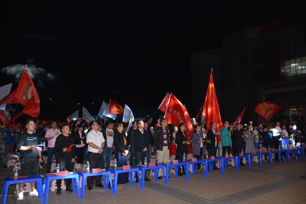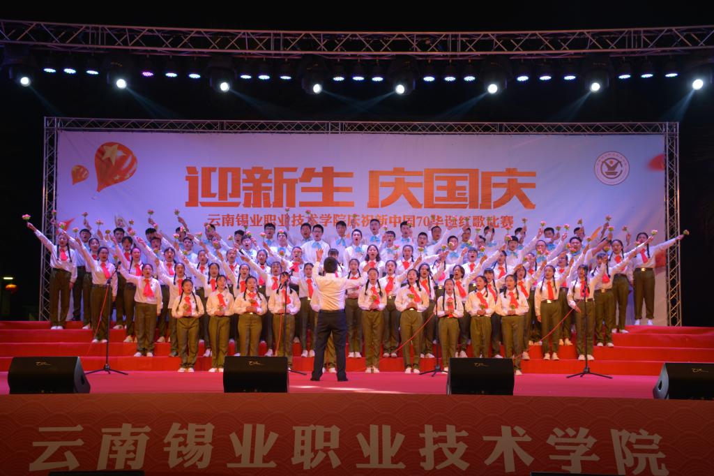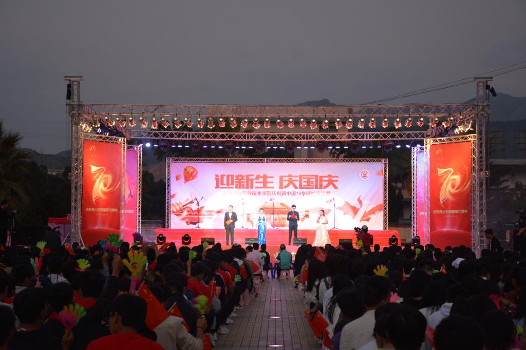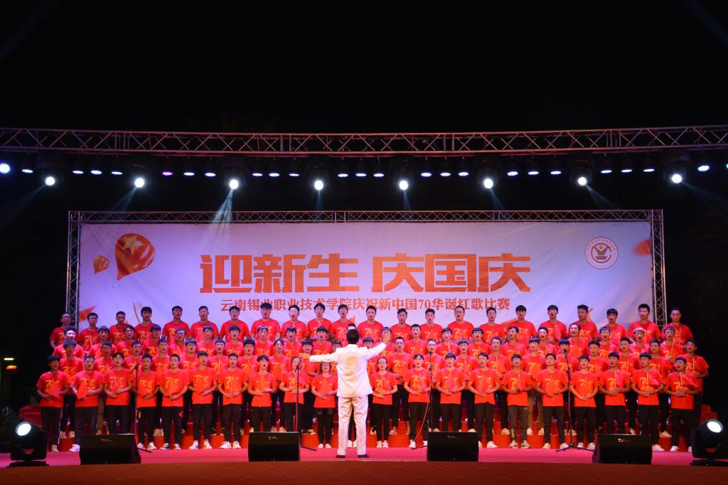 9月27日晚,职业技术学院“迎新生 庆国庆”庆祝新中国七十华诞红歌比赛文艺晚会在学院图书馆前广场隆重开幕,共同回顾70年来新中国取得的辉煌成就。1000余名师生在习近平新时代中国特色社会主义的伟大号角中唱响心中的歌,向祖国告白,向新中国成立70周年献礼。控股公司党委常委、党委副书记姚家立、党委常委、组织人力资源部部长吴君、控股公司工会副主席佴亚阳、交通银行红河分行党委书记、行长马俊龙、个旧市新华书店经理龙静、个旧市乾韵艺术培训学校校长、个旧市古筝协会会长郭平、云南省艺术学院业余音乐等级考核评委、优秀园丁优秀伯乐获得者及国家三级演奏员王锡刚、个旧市青少年活动中心活动部主任杨继芳及学院党政领导班子成员及云锡控股公司各直管单位的党群部门有关领导出席晚会并共享节目盛宴。