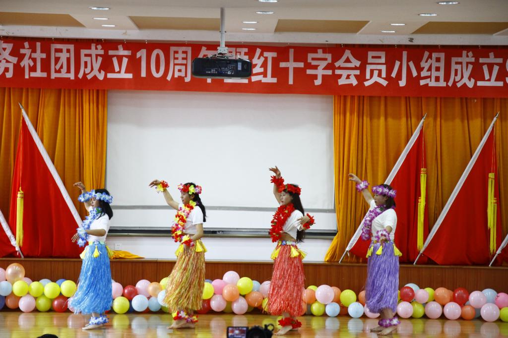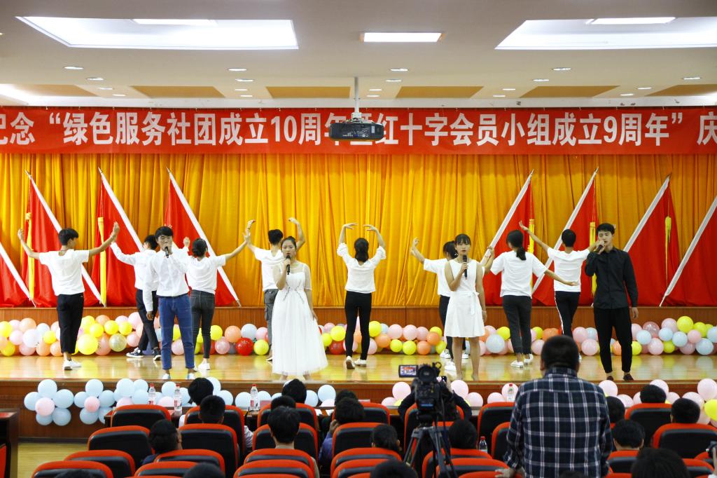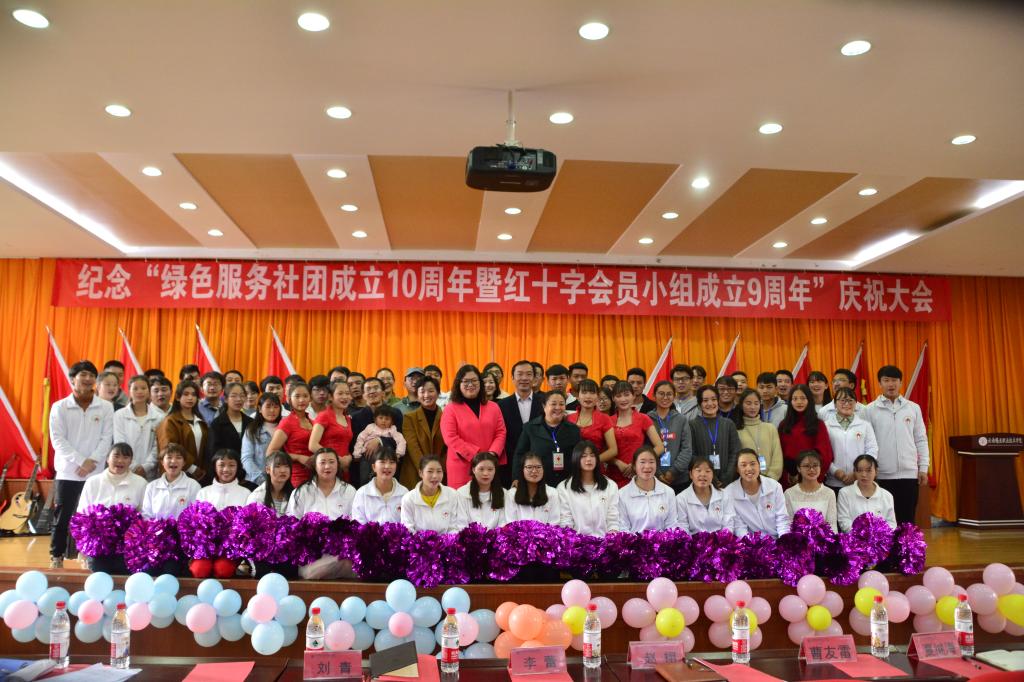 11月11日,职业技术学院大学生绿色服务社团成立十周年暨红十字会员小组成立九周年庆典活动在三号教学楼508报告厅隆重举行。学院党委副书记、院长李蕾、党委副书记、工会主席刘青、个旧市红十字会专职副会长赵栩、学生处处长曹友雷,宣传部部长夏继海及社团今往届理事及社员以及学院各大学生社团代表共280余人参加庆典活动。
