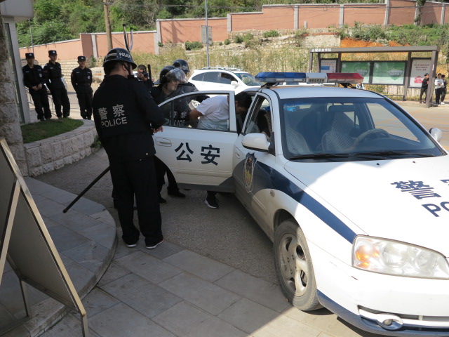 为预防和有效处置各类恶性伤害师生事件的发生,检验校园安保人员应对突发性暴力事件的反应和处置能力,按照学院的部署和安排,5月31日下午,学院在校门口举行了反恐防暴演练,个旧市公安局建设路派出所民警及学院后勤保卫部、门卫以及护校队等安保人员参加了演练。