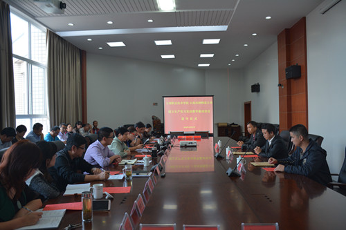 为了落实全国职业教育会议精神,培养符合现代企业发展要求的高素质专业型人才,推动职业学院物流管理专业的快速发展,进一步加强校企深度融合,近日,职业学院院长李建波在五楼中会议室与云南鸿翔一心堂药业(集团)股份有限公司配送部经理高华吉代表双方签订了建立物流管理专业生产实习实训教学基地协议。鸿翔一心堂云南公司物流中心配送部副经理张伟、人事部经理任延、职业学院班子成员和各院系部负责人及相关人员参加签字仪式。