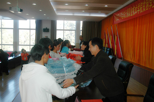 仪式上,李建波院长代表学院接受了广东东惠集团赵中菊女士、商甲王天邦先生向贫困学生捐赠的价值1.5万元的服装并为来自学院各系部的103名贫困学生发放了衣物。受捐赠贫困学生代表关燕在捐赠仪式上对学院及社会各界人士送来的“温暖”表示感谢并表示在今后的学习中一定会更加勤奋刻苦,争取以更加优异的成绩回报社会,绝不辜负学校何社会各界的关心和期望。