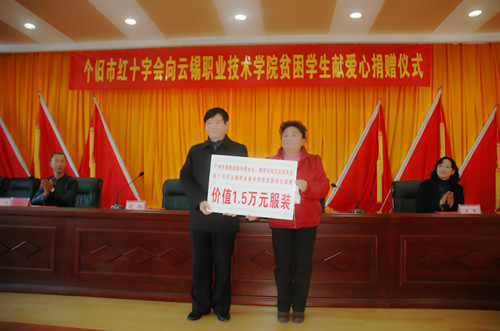 仪式上,个旧市红十字会专职副会长赵栩对职业学院长期以来对红十字协会工作的大力支持和帮助表示感谢。