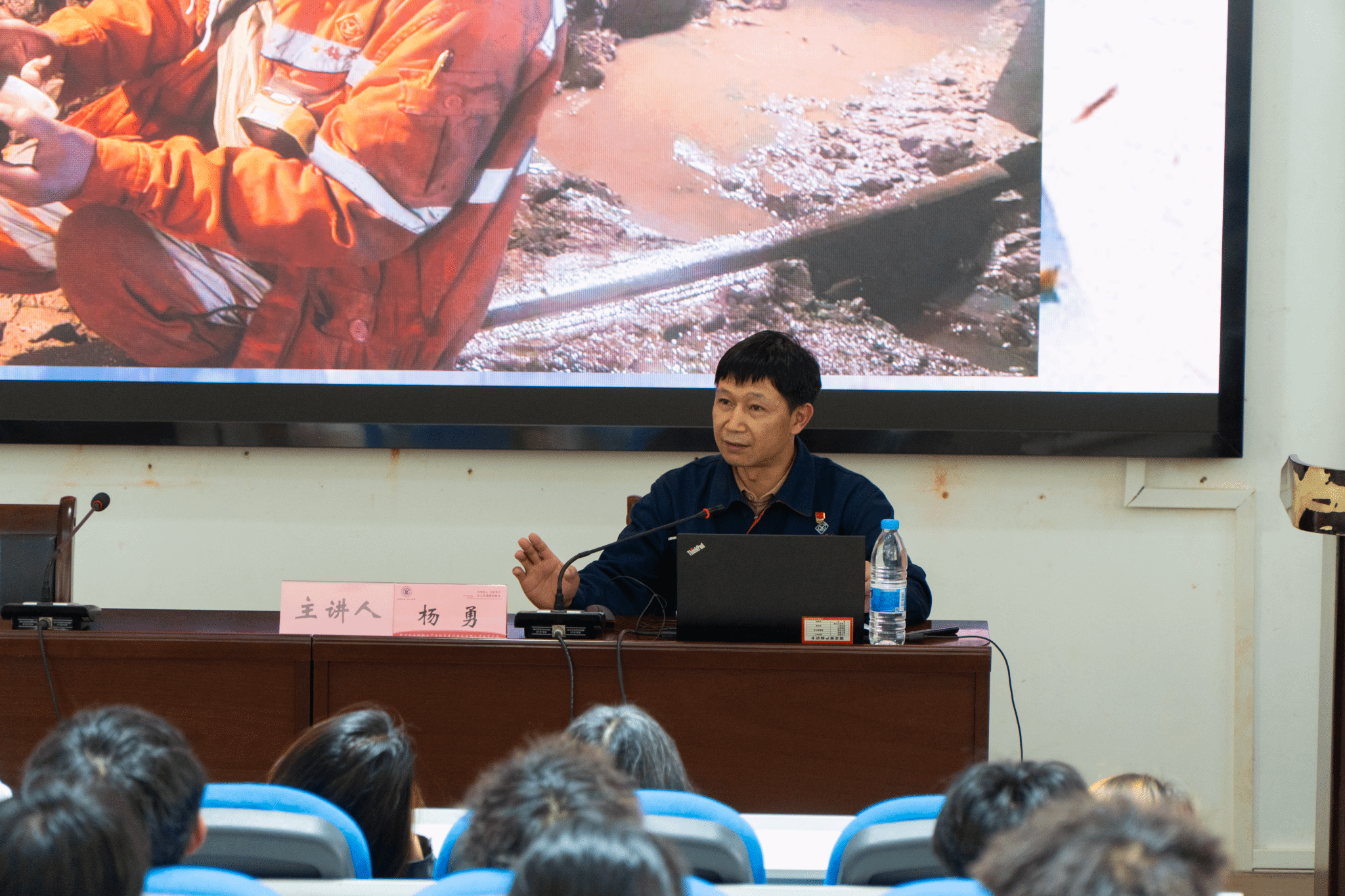 4月21日,学院在培训楼报告厅组织开展“先进模范”进校园活动,国务院特殊津贴享受者、全国技术能手、云岭首席技师、省技术能手杨勇为学院140余名青年学子讲述个人扎根矿山攻难关的奋斗故事。