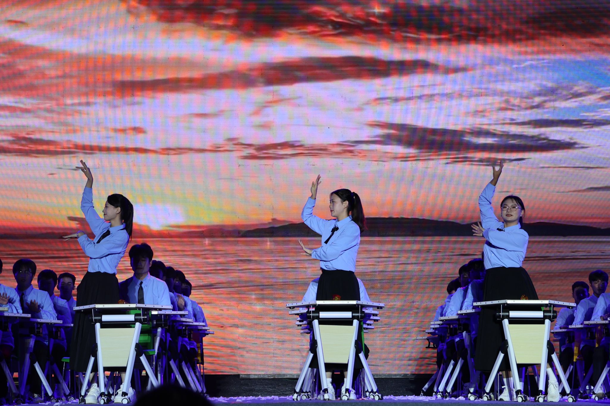 为全面加强美育工作,坚持以美育人、以文化人,丰富校园文化生活,9月28日晚,学院举行“活力校园 律动青春”课桌舞大赛,4300余名师生齐聚现场。