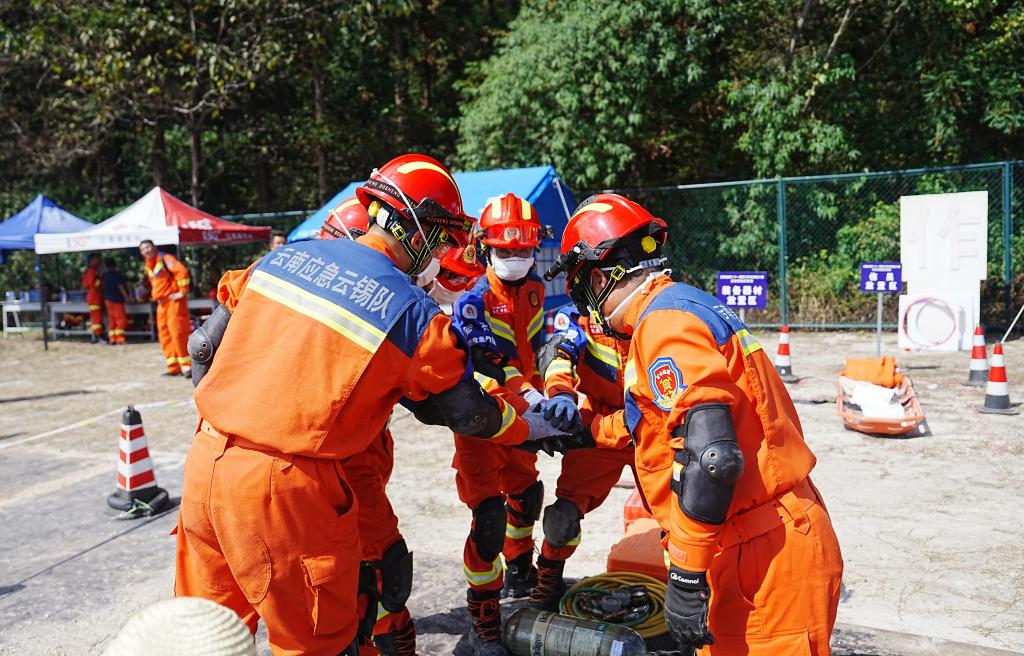 利剑千锤成器,精铁百炼成钢。竞赛现场秩序井然,15支队伍以赛促练、以赛强技,每一次奔跑、跳跃、攀爬,都是对自我的超越;每一个严谨细致的步骤、精准到位的措施,只为在生死关头能够挽救更多的生命。他们以热血铸忠诚、以丹心践使命,为打造与云南高质量跨越式发展需要的专业型、实战型应急救援队伍发挥了示范引领作用。
