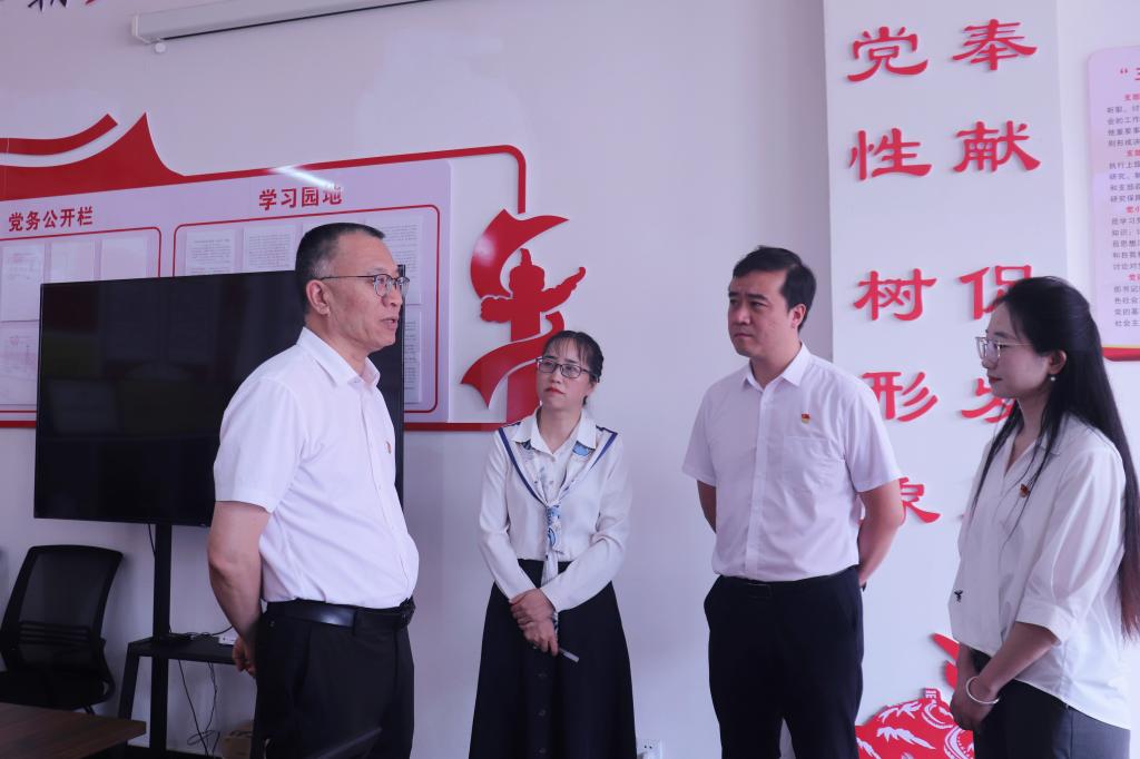 会后,刘俊到工作联系点学院教学管理党支部进行了实地调研。刘俊强调,一是要进一步加强对党建工作的领导,建立健全党建工作责任制,持续抓好习近平新时代中国特色社会主义思想和党的二十届三中全会精神的学习,切实把党建工作抓紧抓好、抓出成效;二是要坚持不懈抓好党员队伍的教育和培养,提升党员的政治觉悟和党性修养;三是要紧紧围绕学校学院的发展大局,将党建工作与中心工作深度融合,把两者放在一起同谋划、同部署、同落实,形成“一盘棋”的工作格局;四是要在教育教学改革、学科专业建设等方面发挥好战斗堡垒作用,为培养德智体美劳全面发展的社会主义建设者和接班人贡献力量。