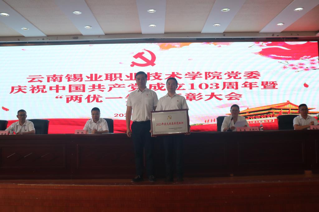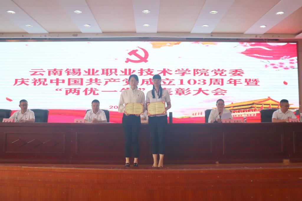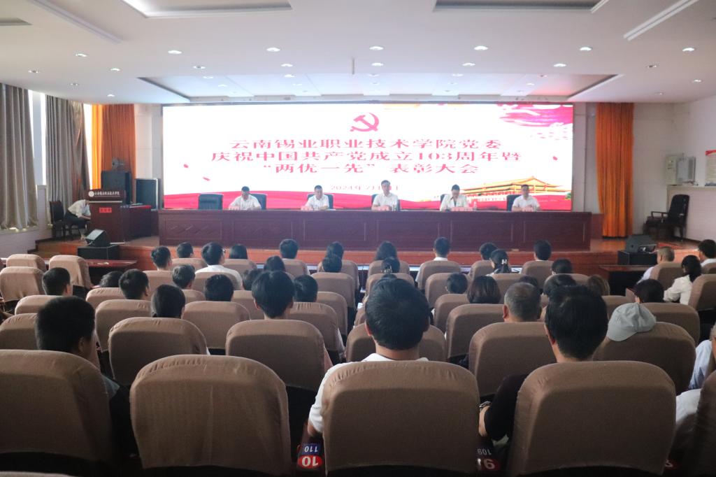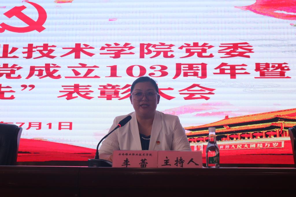 7月1日下午,学院508报告厅隆重举行庆祝中国共产党成立103周年暨“两优一先”表彰大会。