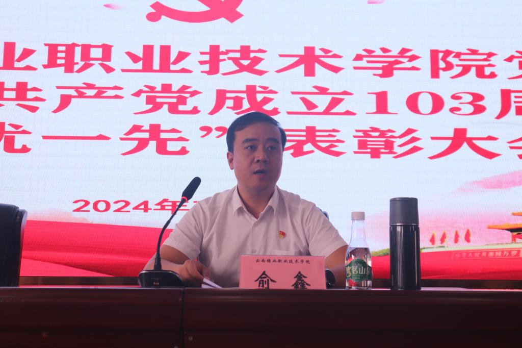 学院党委书记俞鑫向全院奋斗在各条战线上的广大共产党员致以节日的问候,向受表彰的先进集体和先进个人表示热烈的祝贺。他希望全院师生要以受表彰的先进典型为榜样,学习他们忠诚于党、服务师生的崇高精神,学习他们恪尽职守、无私奉献的优秀品质,学习他们锐意进取、勇于创新的务实作风,为新时代赋予的新使命挺膺担当。