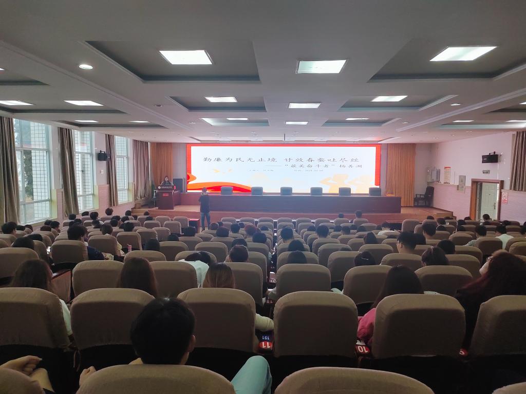 4月9日,学院组织开展了“党的故事”进校园活动,思政课教师段洪梅为200余名青年学生代表讲述了“草鞋书记”杨善洲的奋斗故事。