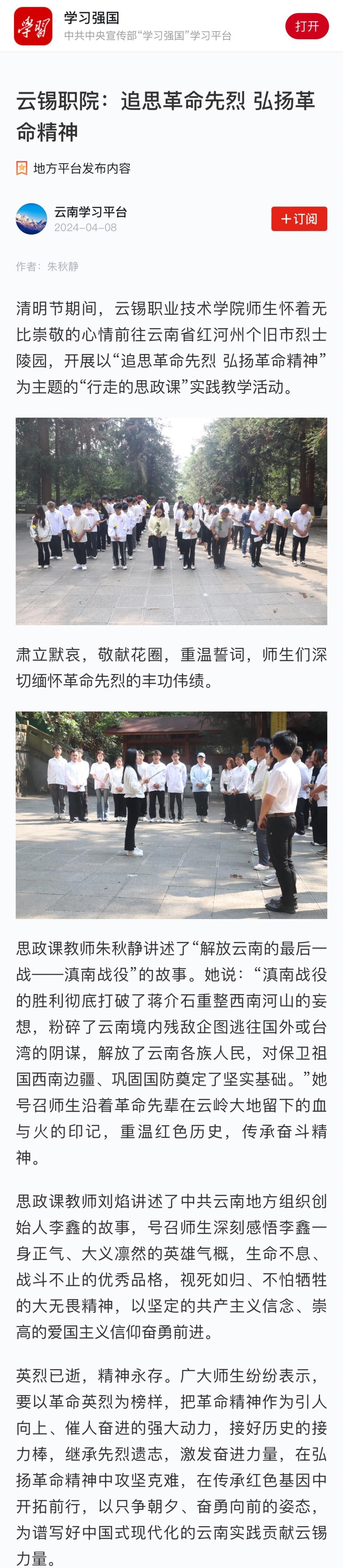 媒体关注|学习强国:追思革命先烈 弘扬革命精神