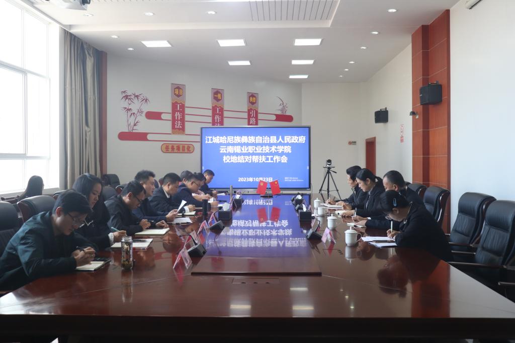 10月23日上午, 江城县人民政府副县长杨存艳一行4人到学院对接“校地结对帮扶”工作,学院党委副书记张弛及学院相关部门负责人参加会议。