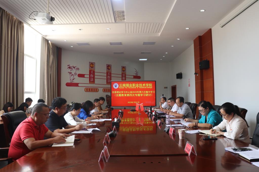 7月21日,学院在中会议室召开第六次党委理论学习中心组集中学习(主题教育第四次专题学习研讨)会,学院党委书记张鹏主持会议,学院领导班子成员、全体初级管理人员、主题教育领导小组办公室相关人员参加学习。