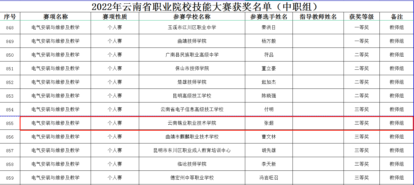 5月17日,云南省教育厅公布了2022年云南省职业院校技能大赛获奖名单,学院教师张超在比赛中荣获三等奖。