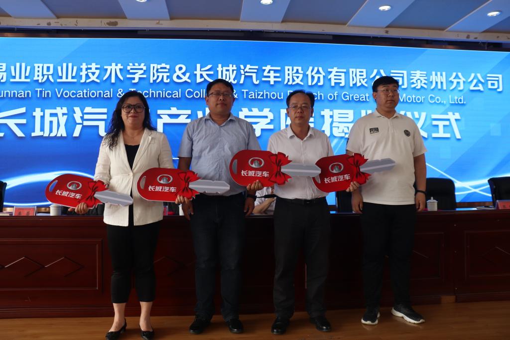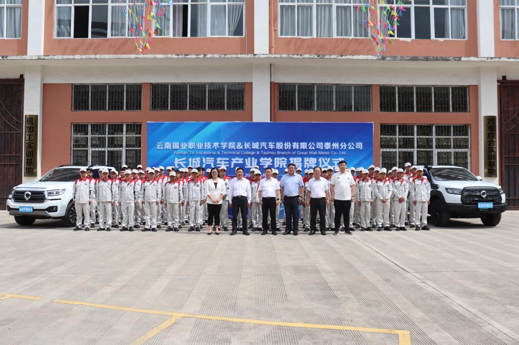 长城汽车股份有限公司是第一批走出国门的中国汽车企业,是中国首家在香港上市的民营整车汽车企业,是国产汽车品牌的优秀代表。近年来,云锡职院与长城汽车股份有限公司积极开展一系列合作与交流,建立了有效的校企合作模式。双方合作两年来,职业学院共组织5批次600名学生到长城汽车泰州分公司进行岗位实习,每批次学生稳岗率均达到了90%以上,广受企业好评。长城汽车产业学院的建立,是职业学院推进高水平高职学校和高水平专业群“双高”建设的重要举措,标志着职业学院与长城汽车泰州分公司的合作迈上了新台阶。
