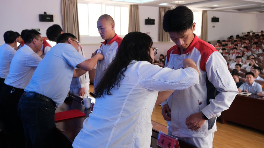 校企双方领导为学生代表佩戴“长城汽车产业学院”徽章,共同为今年会官方网站“长城汽车学院”揭牌。