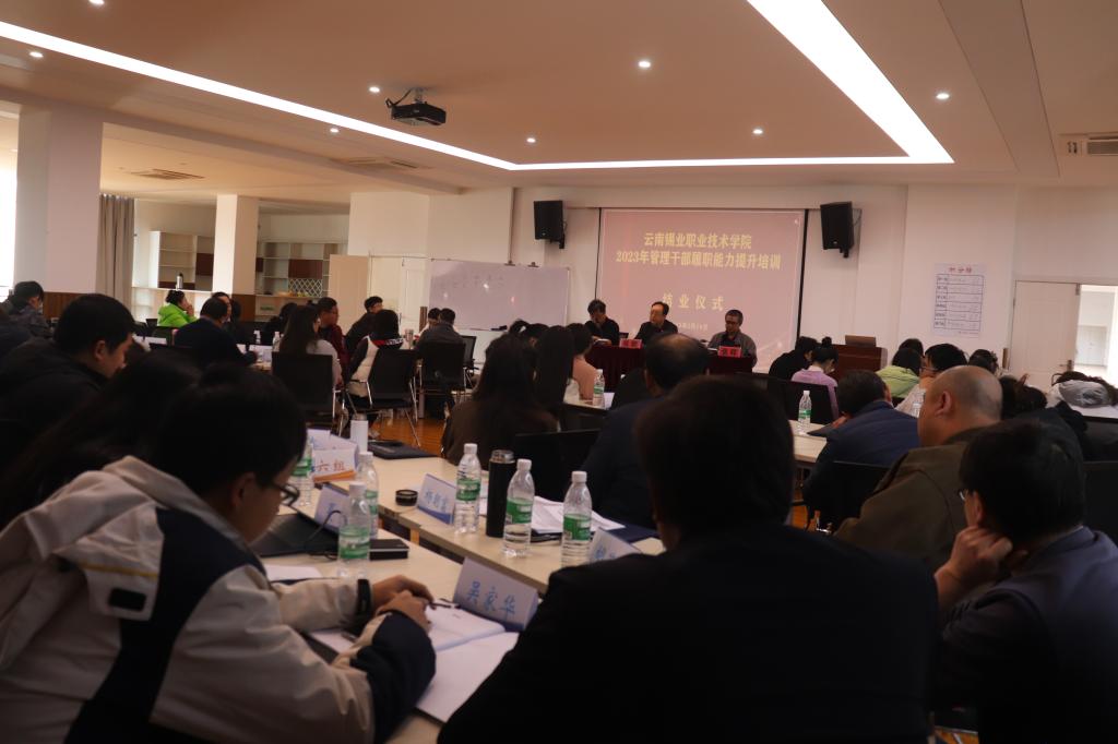 2月18日,学院2023年管理干部履职能力提升培训班顺利结业,结业仪式由职业技能培训鉴定处副处长蔡剑主持,党委书记张鹏出席结业仪式并作总结讲话。