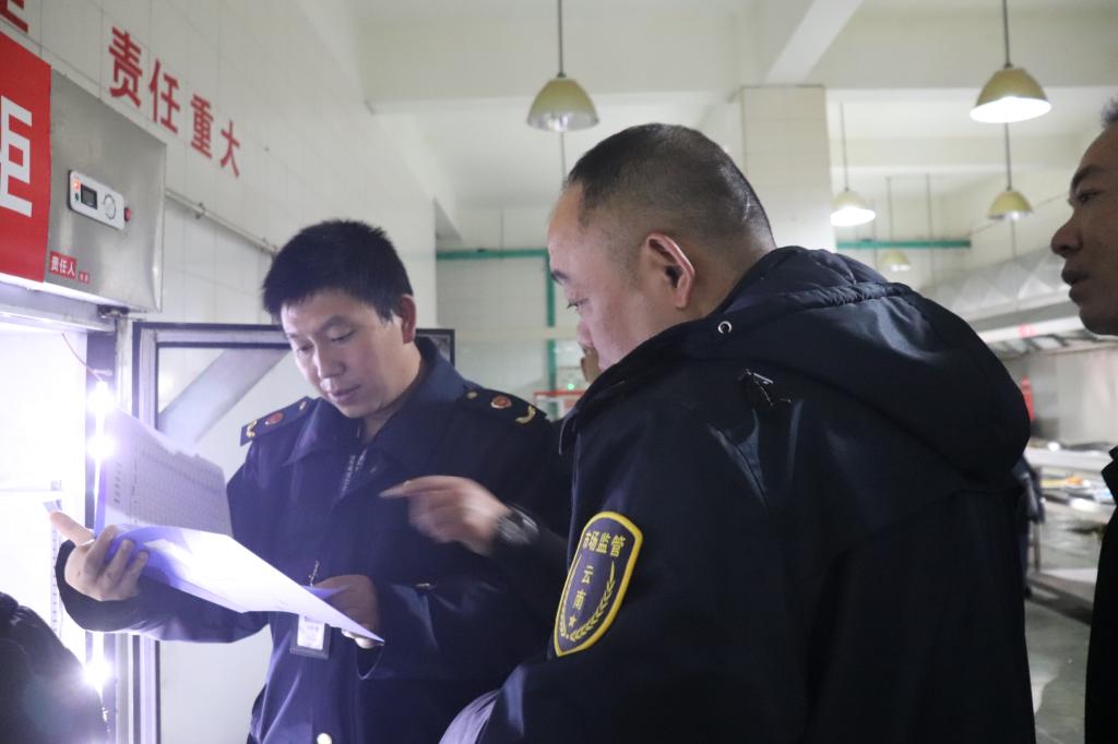 2月17日,个旧市市场监督局一行5人到学院开展食品安全卫生检查,学院党委书记张鹏和相关部门负责人陪同检查。