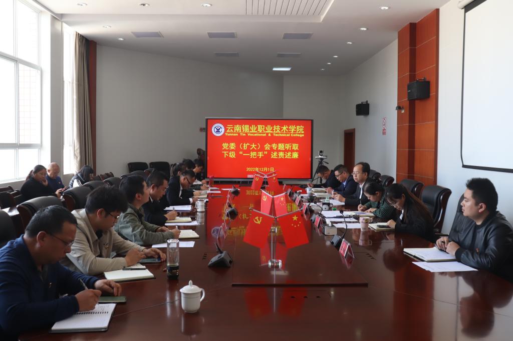 12月1日,为深入贯彻全面从严治党方针,坚定不移推进党风廉政建设和反腐败工作,学院党委(扩大)会专题听取下级“一把手”述责述廉。学院党委书记张鹏主持会议并传达控股公司党委常委会(扩大)会开展下级“一把手”述责述廉的会议精神并作总结讲话,学院领导班子成员、各党支部书记、副书记以及各部门负责人参加会议。