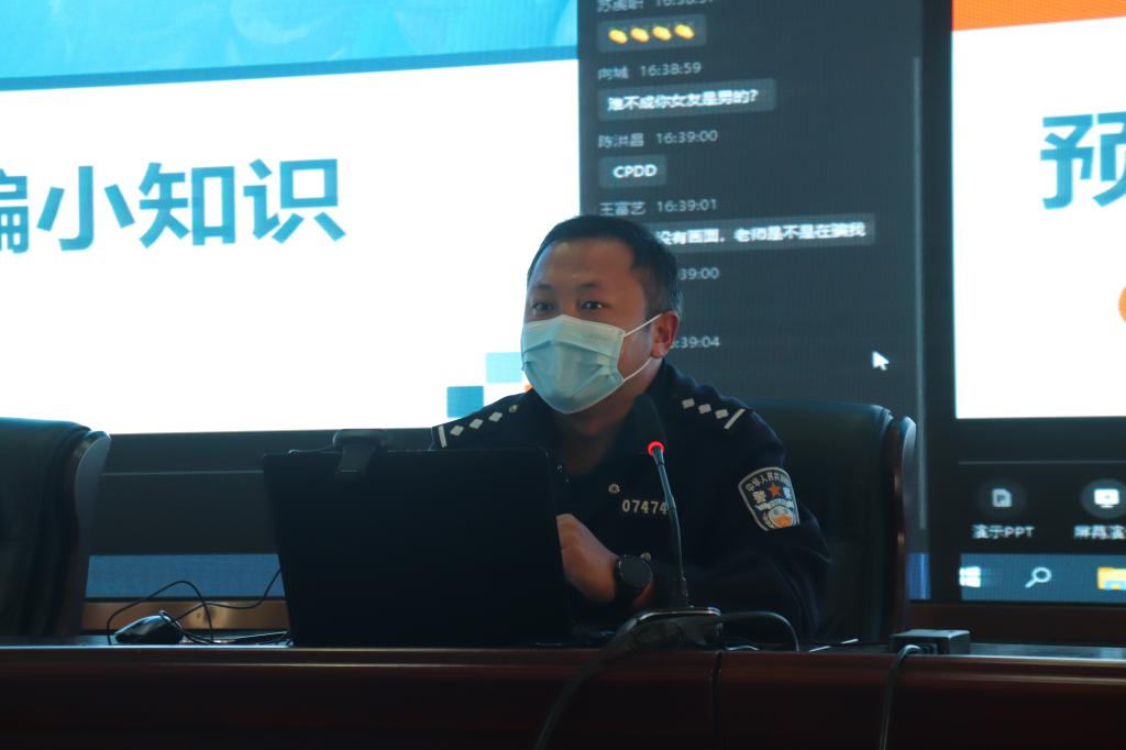 邹劲荣结合辖区和身边发生的典型案例,详细讲解了电信诈骗的种类、惯用手段及防范措施。告诫师生不轻信各种理由索要财物的陌生电话或短信,不轻信来历不明的电话、信息,不向对方透露自己及家人的身份信息、存款、银行卡等情况,不向陌生人汇款、转账等。如遇到可疑情况,不急于做决定,要及时向亲属、朋友或拨打110咨询,以免遭到不法侵害;如果上当受骗,必须第一时间向警方报案,尽快挽回损失。