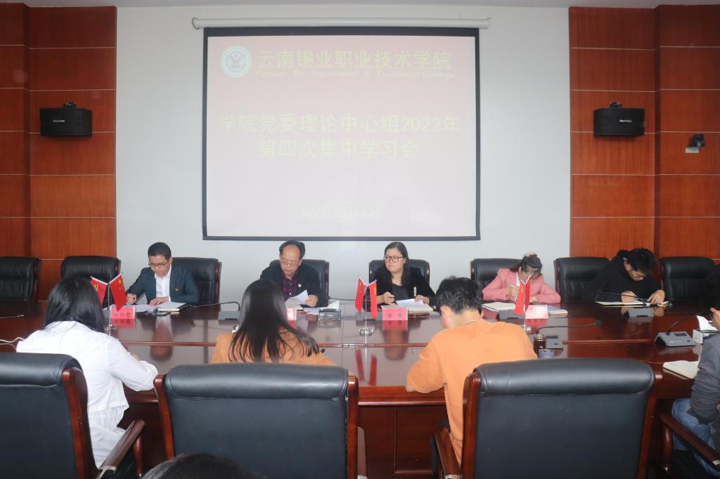 5月18日,为深入学习贯彻习近平总书记关于全面从严治党、家风建设、廉洁文化建设的重要论述及控股公司党委书记、董事长胡均在产业工人队伍建设改革推进会及2022年青年座谈会上的讲话精神,推动学院全面从严管党治校向纵深发展 ,助力改革发展跑出加速度.学院党委在教学楼中会议室今专题召开2022年第四次党委理论中心组学习会。