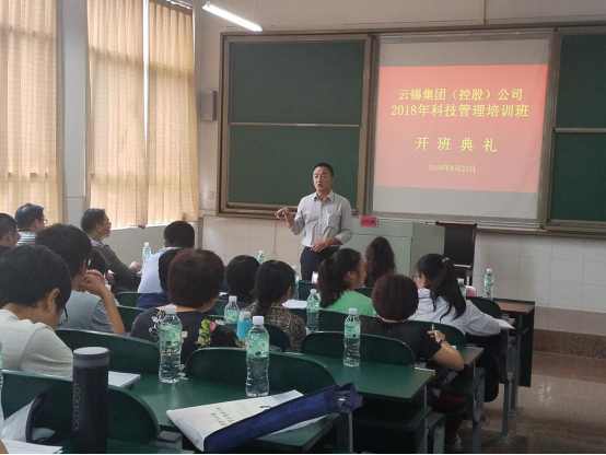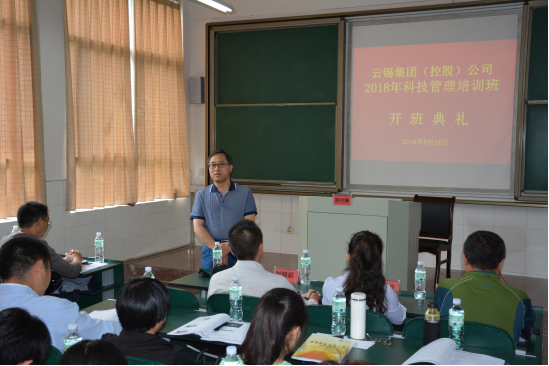 根据控股公司《关于举办2018年度云锡集团(控股)公司科技管理培训的通知》要求,云锡人才培训中心与战略合作伙伴——昆明高博教育信息咨询有限公司,于2018年8月24日-26日,在云锡人才培训中心举办了“控股公司科技管理培训班”开班典礼,控股公司科技和运营管理部主任胡时耀同志参加了“控股公司科技管理培训班”开班典礼,并作动员讲话。