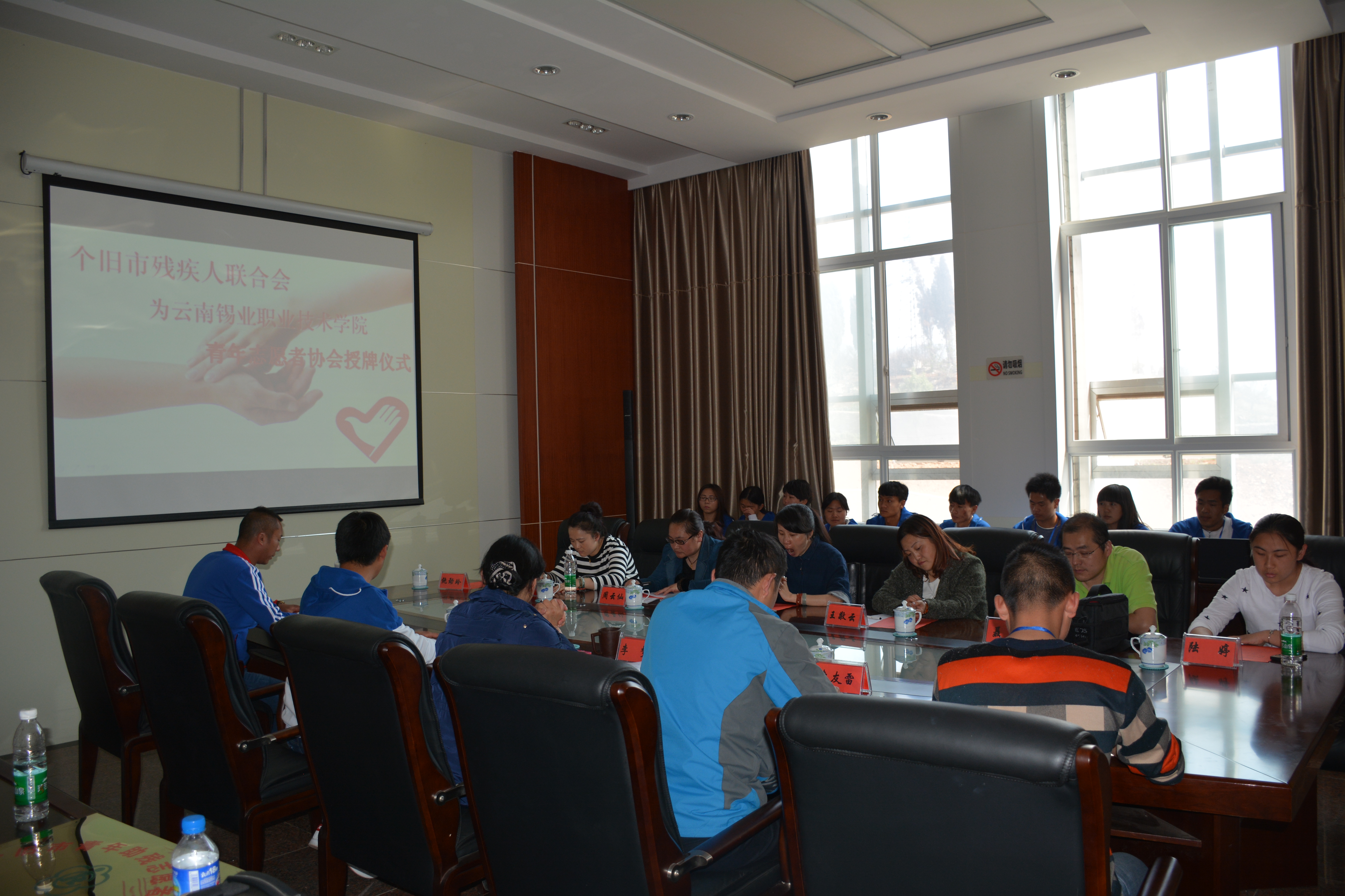 个旧市残疾人联合会为职业学院举行青年志愿者协会授牌