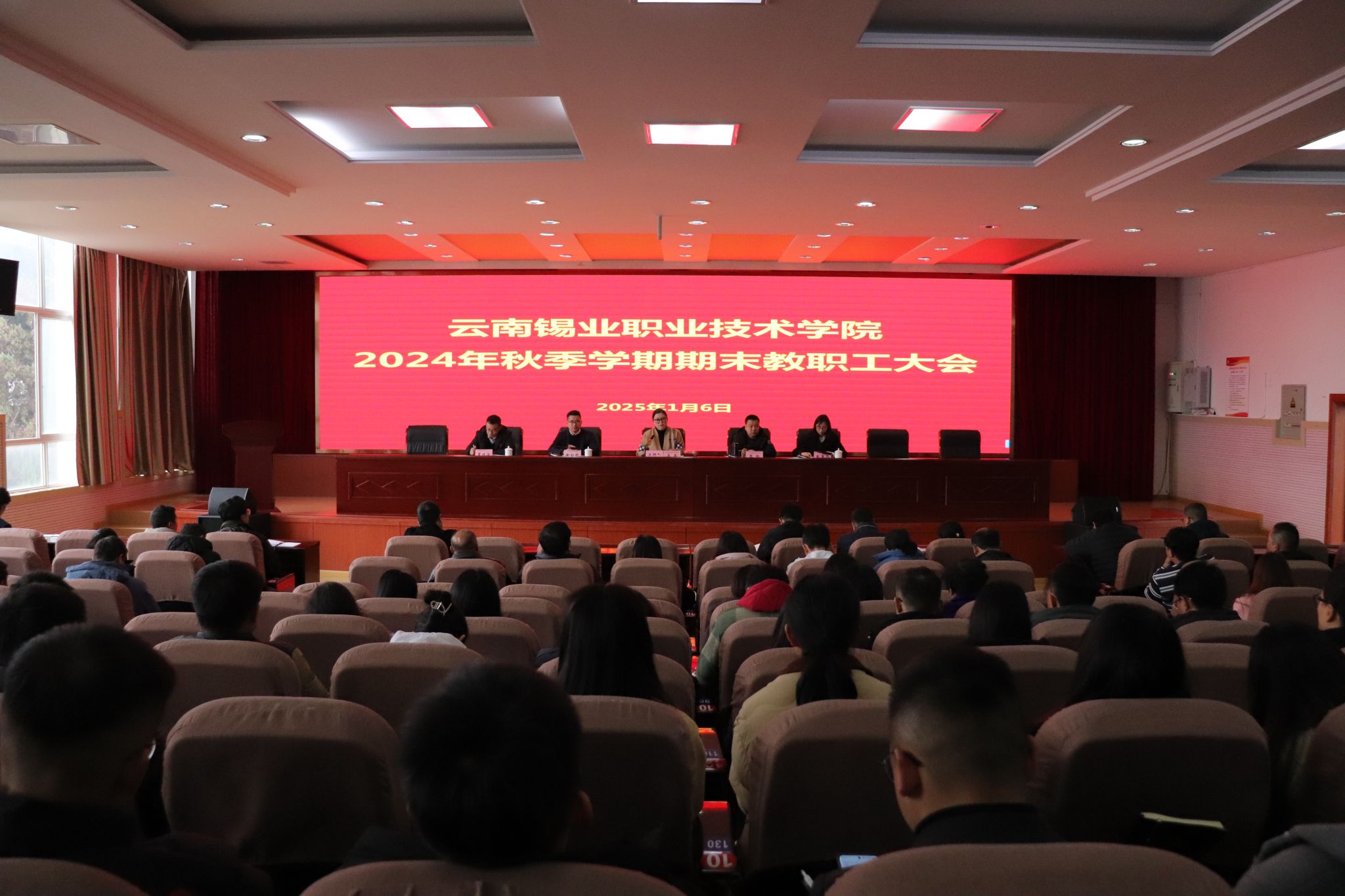 1月6日,学院在教学楼508报告厅召开2024年秋季学期期末教职工大会。回顾2024年工作成果,明确发展方向,细化发展举措,安排部署2025年重点工作。学院党政领导班子成员、全体教职工参加大会。学院党委副书记、院长李蕾主持会议并代表学院党委向为学院事业发展付出辛勤劳动的全体教职工表示衷心的感谢和诚挚的敬意。李蕾指出,学院始终坚定不移地以习近平新时代中国特色社会主义思想为指引,深入贯彻落实党的二十大及党的二十届二中、...