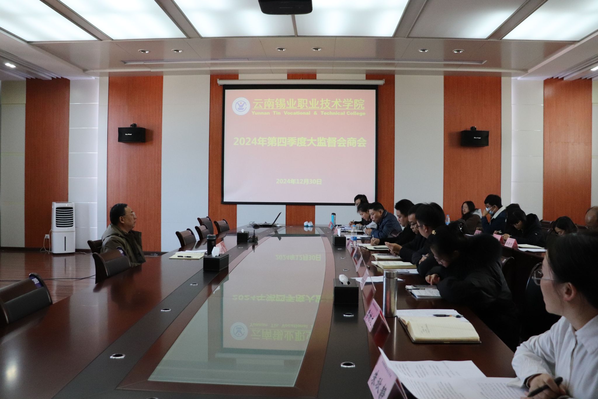 12月30日,学院纪委组织召开2024年四季度清廉学校建设监督会商推动会,各党支部、各职能部门负责人参加会议。学院党委委员、纪委书记马亚三主持会议并对下一阶段大监督体系建设工作提出三点要求:一要加强对《清廉云南建设云锡行动监督工作指引》的学习、深化与认识。各职能部门要深化对该指引的理解,树立系统思维,将关联业务融入“十大行动”,借助季度会商、交流研讨等形式,构建监督信息互通共享及问题线索移交机制,整合党委、...