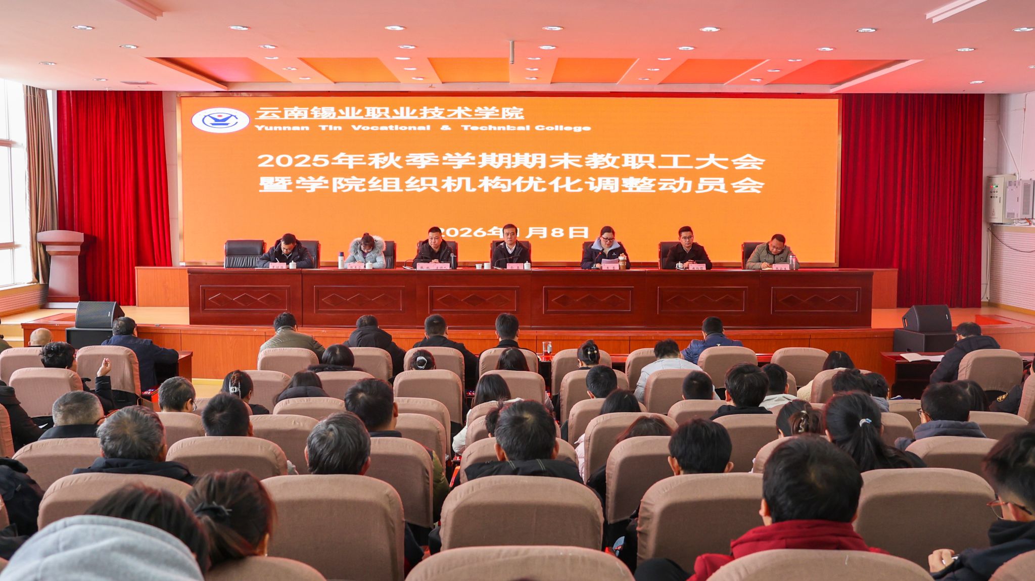 1月8日,学院召开2025年秋季学期期末教职工大会暨组织机构优化调整动员会,全面启动新一轮深化改革。学院党委书记俞鑫出席并讲话。