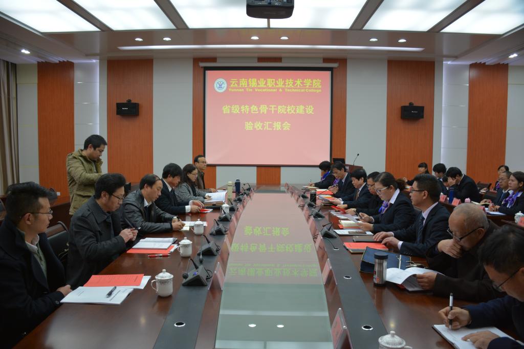 根据《云南省教育厅 云南省财政厅关于确定2014年度省级特色骨干高等职业院校建设计划立项建设单位的通知》(云教高[2015]7号)和2017年《云南省教育厅办公室关于开展省级特色骨干高等职业院校验收工作的通知》等相关文件精神,12月8日,云南省高教评估中心受云南省教育厅、云南省财政厅的委托,组织了以云南机电职业技术学院院长李善华为组长的验收专家组一行6人到职业学院对省级特色骨干院校建设项目进行验收。省级特色骨干院...