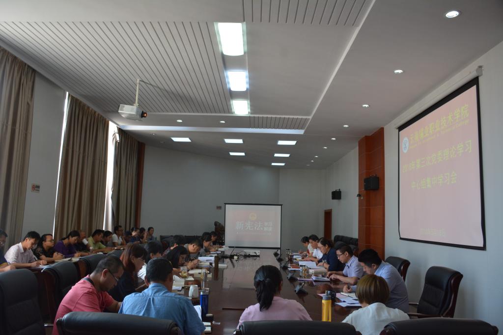 为深入学习宣传贯彻2018年宪法修正案精神,切实推进依法治校,5月18日上午,职业学院在三号教学楼五楼中会议室召开2018年第三次党委理论学习中心组集中学习会。学院党委书记李蕾主持会议。会议传达学习了控股公司《关于印发深入学习宣传<中华人民共和国宪法>实施方案的通知》。全文学习了《习近平谈治国理政》第二卷中的《领导干部要做尊法学法守法用法的模范》。会上,思政部法律课专任教师王惠以专题辅导的形式围绕为什么修改...
