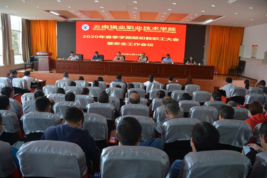 5月13日,学院在3号教学楼508报告厅召开2020年春季学期期初教职工大会。学院院长李蕾主持会议,回顾了学院前期疫情防控工作,安排部署了2020年重点工作及任务。党委书记张鹏作总结讲话,副院长陈国华对新冠肺炎疫情校园防控作了专题培训。李蕾对学院前期疫情防控工作进行了全面回顾,一是组织领导有力,二是纪律执行严格,三是师生健康排查精准,四是线上教学有序推进,五是线上就业服务不停歇,六是防疫物资储备充分。通过个旧...