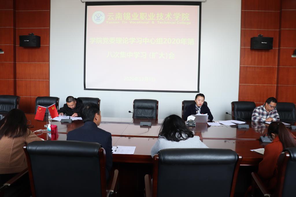 12月1日,学院党委在3号教学楼中会议室举行第八次中心组理论学习会,深入学习贯彻党的十九届五中全会精神,纵深推进全面从严治党,压紧压实管党治党政治责任,深刻汲取武长青案教训,坚持以案促改,严明党的政治纪律和政治规矩,构建风清气正政治生态,为办好新时代职业教育提供坚强纪律和作风保障。学院党委副书记刘青主持会议,领学了十九届五中全会精神以及教育部党组书记、部长陈宝生《建设高质量教育体系》文章精神,结合...