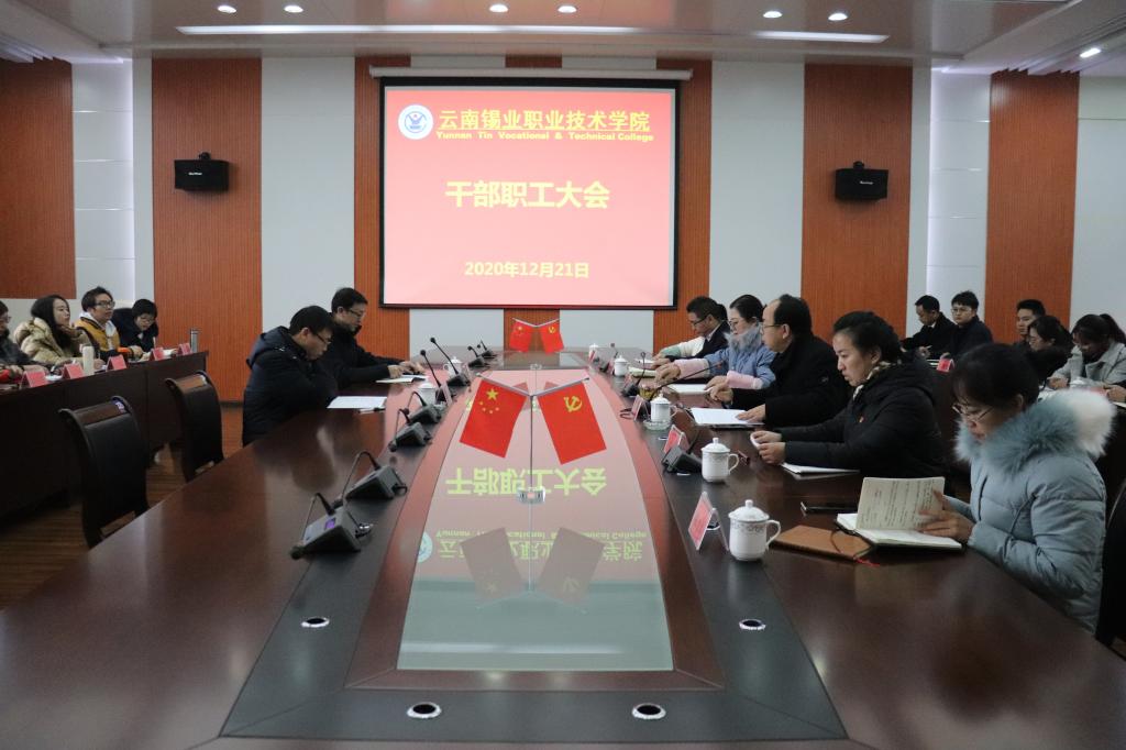 12月21日,云锡职院召开干部大会,宣布干部任职决定。控股公司党委副书记、工会主席姚家立出席会议。姚家立对学院领导班子提出要求:一是提高政治站位,增强“四个意识”、坚定“四个自信”、做到“两个维护”。聚焦立德树人根本任务,推进职业教育提质培优行动计划,提高教育教学、培训鉴定质量,服务国家关于把产业工人队伍建设作为实施科教兴国、人才强国战略的部署要求,切实加强劳动教育,培育工匠精神,为推进新时期产业...